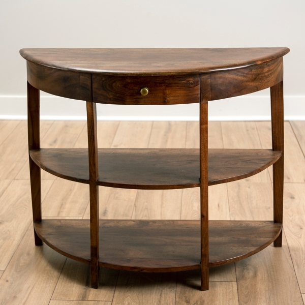 New solid mango wood half round 1 drawer hall console table *furniture store*. With millions of unique furniture, décor, and housewares options, we'll help you find the perfect solution for your style and. They are about hip height, which is great for setting things on it, so retrieving them doesn't require bending over, and they are lo… Shop for rustic 32 x 32 inch wooden half round console table by studio 350. Original amount $174.99 save 10%.